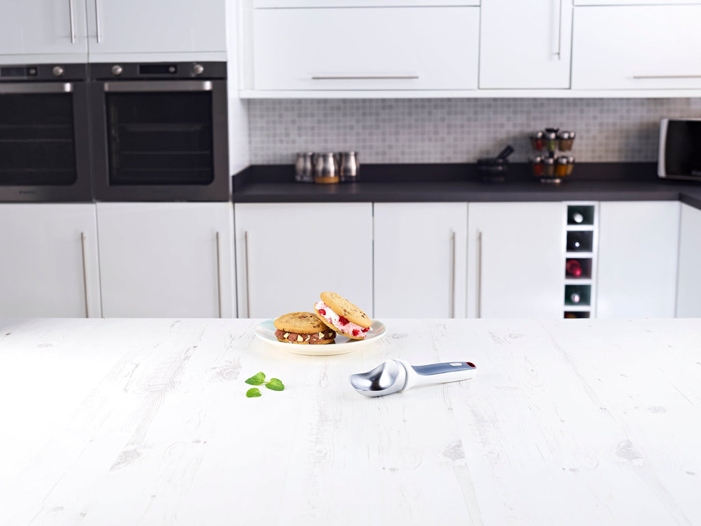 The Zyliss Right Ice Cream Scoop has a superior design which makes it well equipped to dig into even the hardest frozen ice creams. You can use it on ice cream, sorbet or frozen yogurt with ease! The scoop shape also creates and appetizing presentation. The Right Scoop comes with a non-slip ergonomic handle that keeps your hands out of the cold and free from strain. Plus, the handle is treated so that it will not yellow with age.
