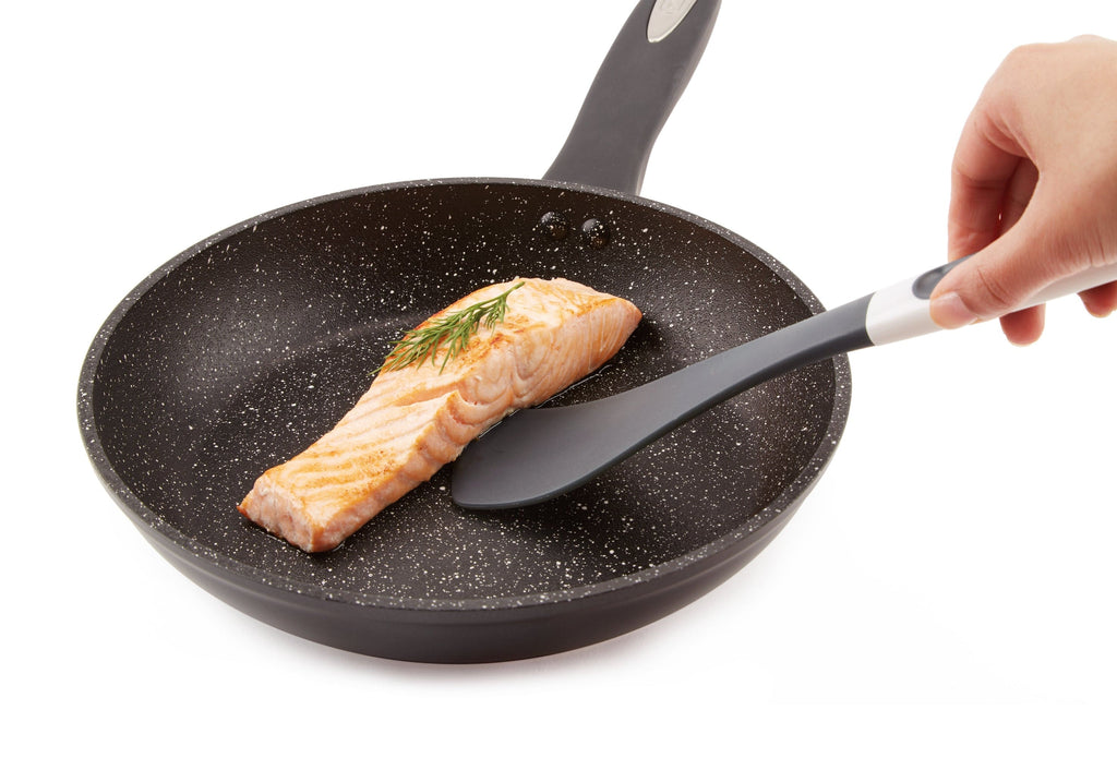 • Broad surface and angled thin front edge is safe on nonstick cookware