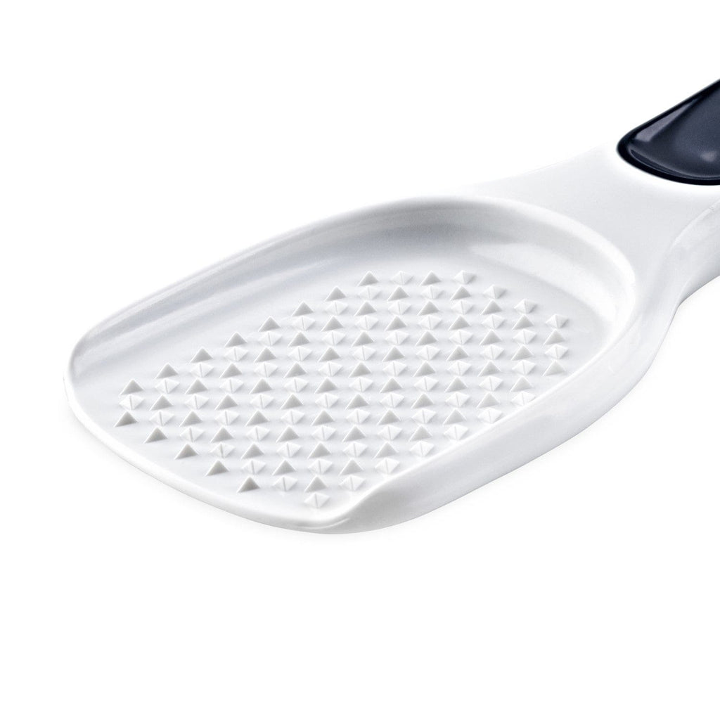 The 2 in 1 Ginger Tool from Zyliss can be a handy addition to your kitchen kit. Preparing this fibrous root spice can be an arduous task but if you want the benefits of using fresh ginger then this tool can become a handy go-to tool for you. Peeler blade makes easy work of peeling ginger skin with minimal waste. It can also be used to create thin ginger slices. Comes with a protective cover for safe storage. Use circular movement on the textured grating surface to mince the ginger. Also suitable for garlic. Compact handheld tool designed for fuss free use and easy cleaning. Simply rinse and pop it in the dishwasher after cleaning.